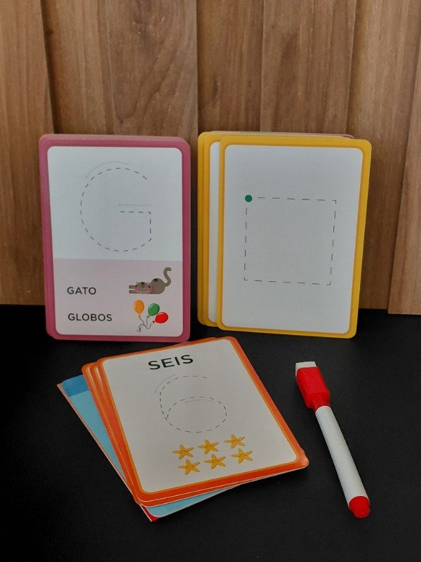 Juego de cartas con trazos, letras y números para dar los primeros pasos en la escritura.