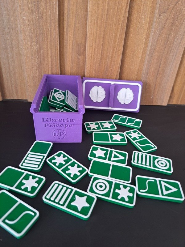 Juego de dominó con relieve en caja, fabricado en tecnología 3D, del color y tamaño que necesites