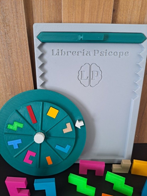 Motiva la concentración, estimular habilidades motoras finas, coordinación mano-ojo, pensamiento estratégico. Contiene: 1 Ruleta con figuras 1 Tabla de dificultad 1 Tableros (11.6 X 16.6 CM ) 40 fichas con diferentes formas