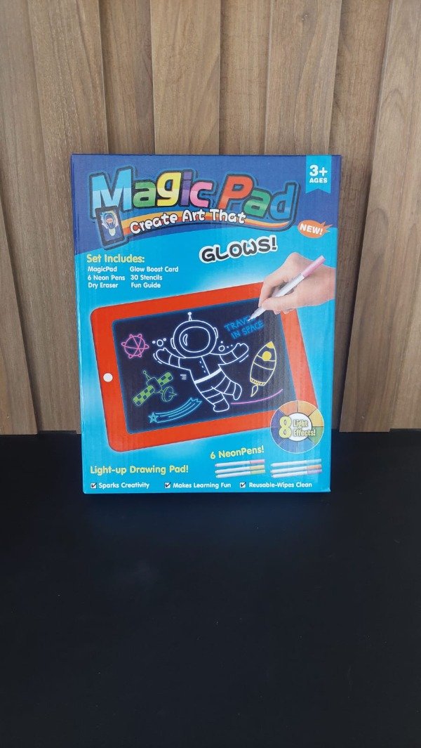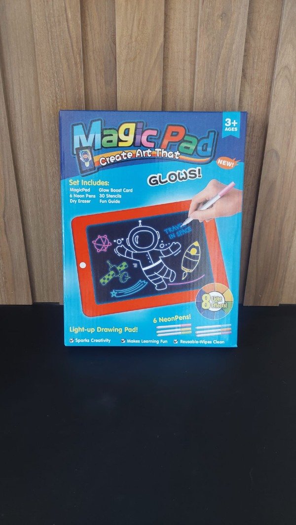 Pizarra Mágica con Luz: Creatividad y Aprendizaje Luminoso. ✨ Una herramienta educativa que estimula la imaginación y las habilidades preescolares de los más pequeños. Incluye plantillas intercambiables con 3 áreas de enfoque: 1. Desarrollo Académico: Práctica de letras, números y operaciones matemáticas. 2. Expresión Artística: Espacio libre para pintar y dibujar. 3. Juego Didáctico: Desafíos variados para un aprendizaje divertido. Características Premium: 6 fibrones borrables y toalla limpiadora. Sus luces LED de colores (cambian con un botón) dan un toque mágico a cada creación. Medidas: 26 x 20 cm. Edad Sugerida: +3 años. ¡Potencia el desarrollo cognitivo de forma mágica! (Nota: No incluye pilas.)
