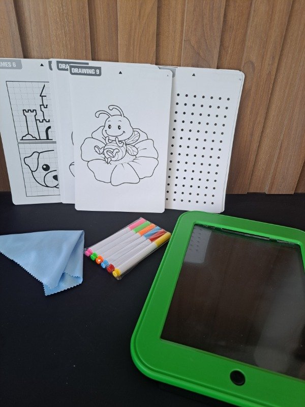 Pizarra Mágica con Luz: Creatividad y Aprendizaje Luminoso. ✨ Una herramienta educativa que estimula la imaginación y las habilidades preescolares de los más pequeños. Incluye plantillas intercambiables con 3 áreas de enfoque: 1. Desarrollo Académico: Práctica de letras, números y operaciones matemáticas. 2. Expresión Artística: Espacio libre para pintar y dibujar. 3. Juego Didáctico: Desafíos variados para un aprendizaje divertido. Características Premium: 6 fibrones borrables y toalla limpiadora. Sus luces LED de colores (cambian con un botón) dan un toque mágico a cada creación. Medidas: 26 x 20 cm. Edad Sugerida: +3 años. ¡Potencia el desarrollo cognitivo de forma mágica! (Nota: No incluye pilas.)